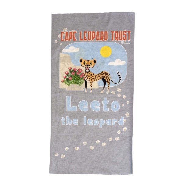 Tube scarf design based on the character, Leeto the Leopard, from the Cape Leopard Trust book, Footprints in the Fynbos.