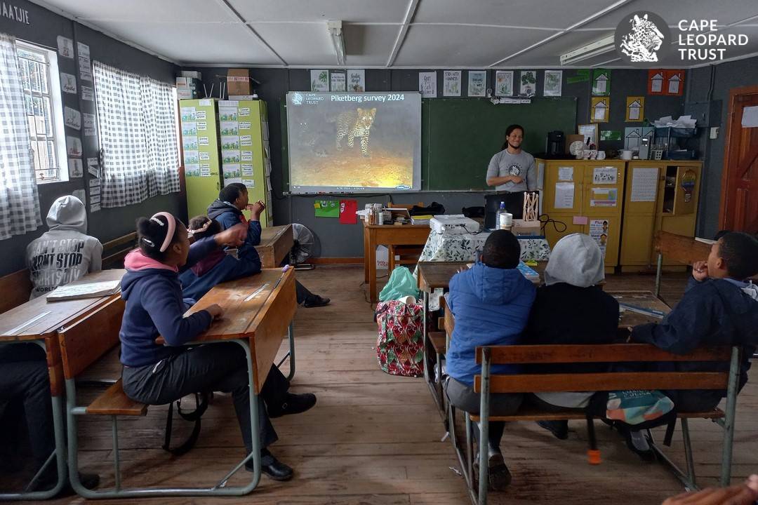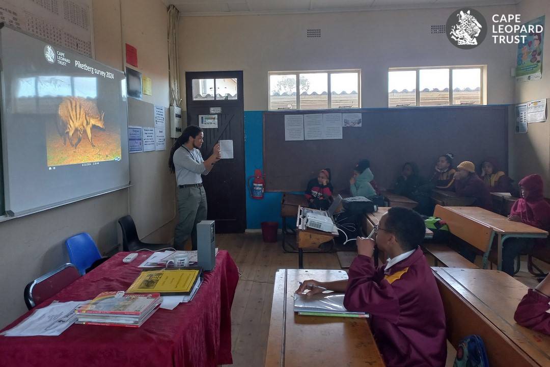 During the field survey, the CLT Education team also reached out to local schools to deliver environmental education lessons. To complement this work, the CLT Research and Conservation Field Officer joined lessons to showcase photos from local camera traps and inspire learners with his personal experiences of what it is like to be a wildlife researcher working in their area.