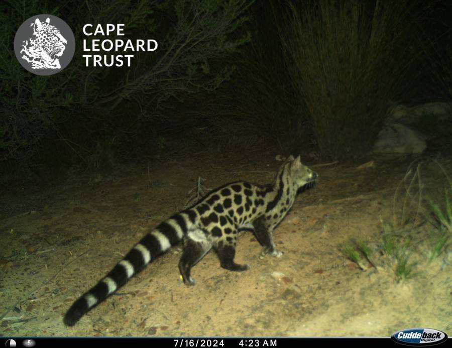 The survey has not been without its challenges, with the region experiencing one of its wettest winters on record. Fortunately, we did not lose cameras again to flooding as had happened in the Cederberg in 2023, but many sites were inaccessible for periods due to storm damage, and fieldwork schedules had to be adapted and re-adapted in response to inclement weather and impassable roads. The field teams will surely remember this survey as the muddiest yet, as they got stuck in very deep soft quagmires on more than one occasion! We are also enormously thankful to Ford Wildlife Foundation for our sponsored Ranger, and to the Land Cruiser Club – Southern Africa for keeping Witblitz the Cruiser in tiptop shape. Reliable off-road vehicles are an indispensable part of field-based research!